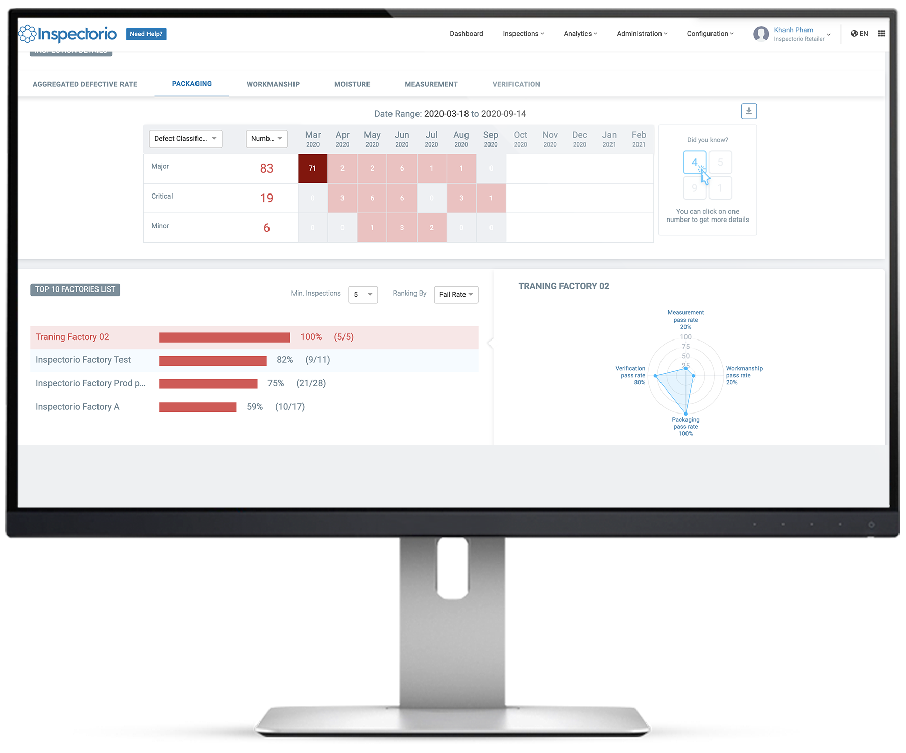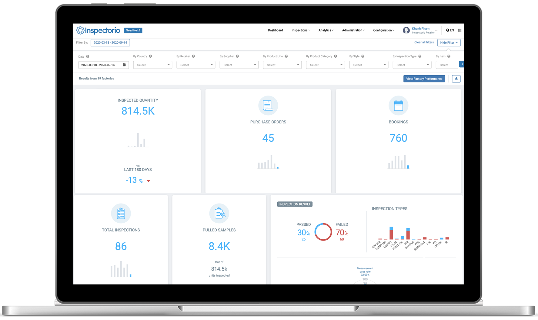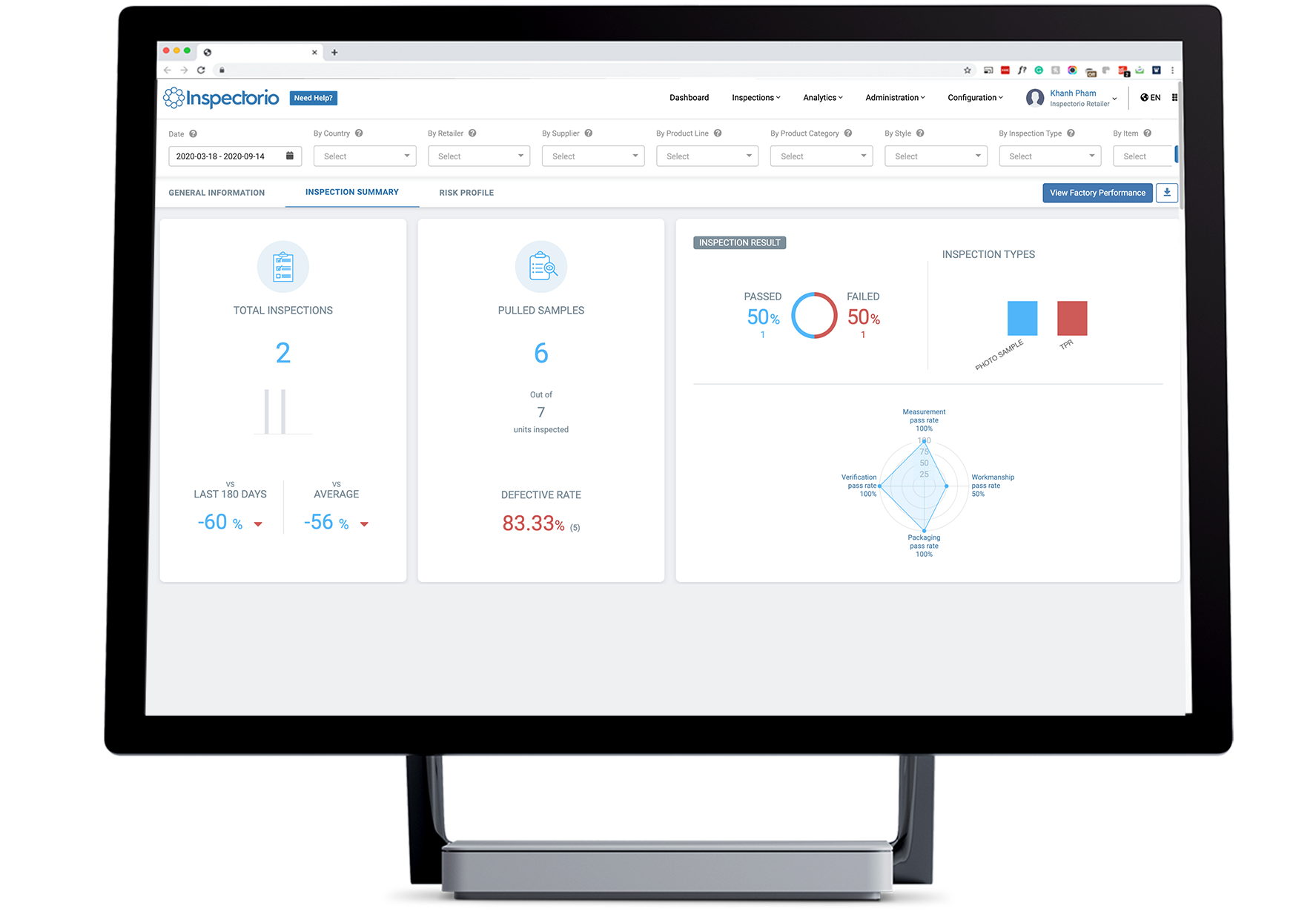 Inspection Summary also includes an Inspection Detail section, giving you complete visibility into a factory’s performance. By taking both a bird’s eye view of your entire ecosystem and a tightly focused dive into individual factory performance metrics, you now have the capability to manage your supply chain with unprecedented clarity.