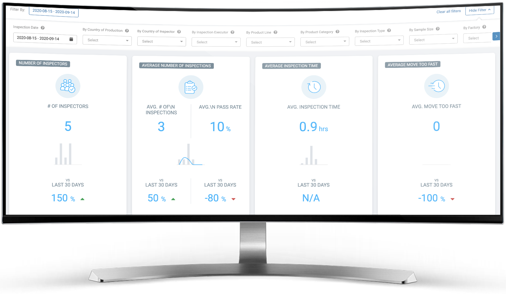As with the rest of Inspectorio’s Analytics, the power of Inspector Analytics begins with advanced filtering.