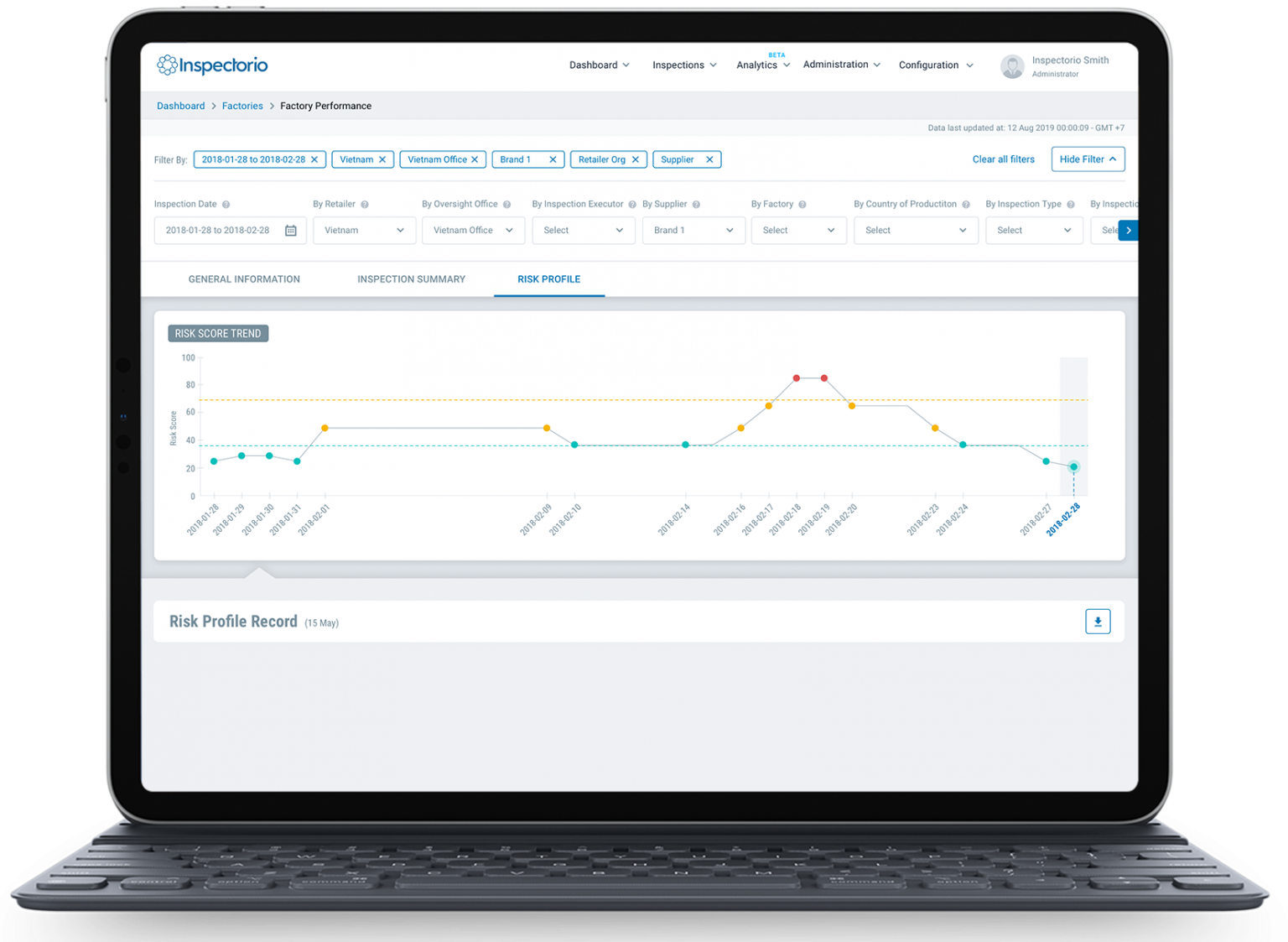 This creates an unprecedented level of detail and immediate update, considering the majority of existing risk models use a static approach – only updating risk scores on average once or twice per year. Inspectorio’s dynamic risk assessment model takes into account every inspection performed and updates risk scores in real time.